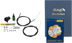 Inhalt Kleinteile-TĂŒte: 2 x Sechskantmutter M10x1, 2 x Scheibe fĂŒr TS-Achse, 8 x Zugendkappe, 1 x Befestigungsschelle fĂŒr DrehmomentstĂŒtze, 5 x Distanzscheibe fĂŒr Kettenblatt, 2 x Schraube M8x0,75, 2 x GewindehĂŒlse M8x0,75, 2 x Scheibe, 1 x ĂleinfĂŒllschlauch, 1 x Seilbox EX