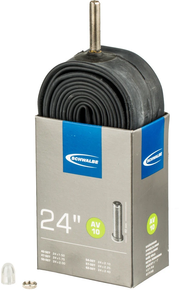 Spezifikationen:Einsatzbereich:BMX, Trial, All MountainETRTO:40-507 bis 62-507Reifendimension:24 x 1,50 bis 24 x 2,50Schlauchmaterial:ButylVentilart:AV 40 mm, DV 40 mm, SV 40 mmPassende Dimensionen (ETRTO):24 x 1,50 (40-507)24 x 1,75 (47-507)24 x 2,0 (50-507)24 x 2,10 (54-507)24 x 2,25 (57-507)24 x 2,50 (62-507)Ausführungen:24×1,5-2,5 AV