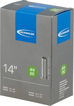 Spezifikationen:Einsatzbereich:KidsETRTO:32-254 bis 40-254Reifendimension:14 x 1,25″ bis 14 x 1,5″Schlauchmaterial:ButylVentilart:AV 40 mmPassende Dimensionen (ETRTO):14 x 1,25 (32-254)14 x 1,35 (35-254)14 x 1,40 (37-254)14 x 1,50 (40-254)VentilinformationFahrradschläuche sind mit unterschiedlichen Ventilarten erhältlich.