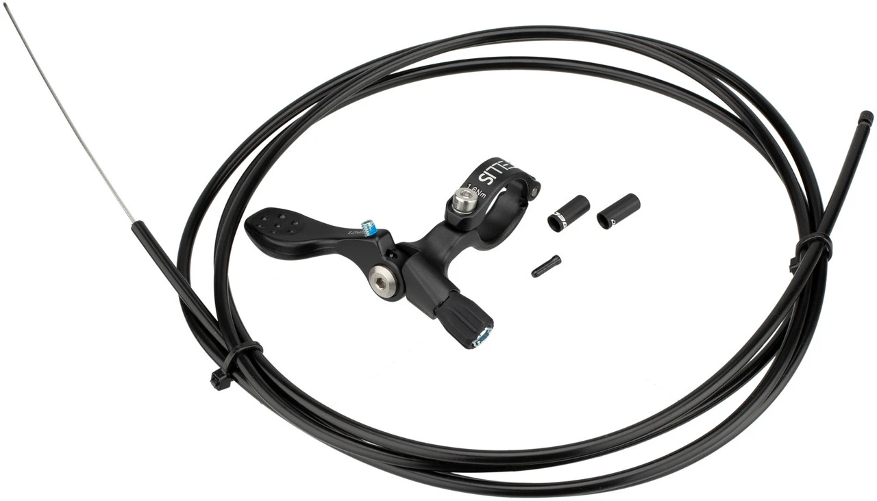 Die hydraulische Vario-Sattelstütze mit mechanischer Stealth-Kabelführung hat einen eloxierten, kratzfesten Stützenkörper mit gelaserten Markierungen zur einfacheren Sattelhöheneinstellung. Der Remotehebel ist leichtauslösend und kann an der linken Seite montiert werden.