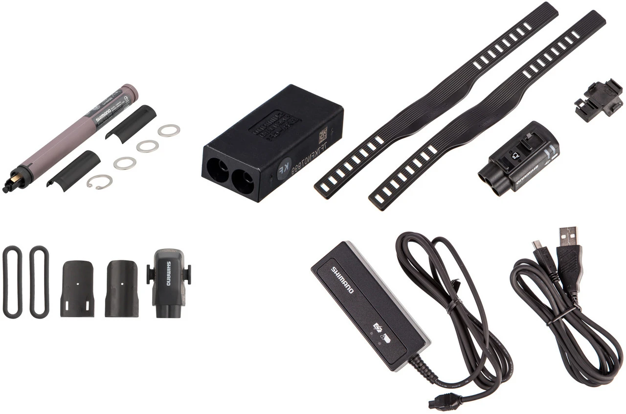 1 x Kassette Shimano XTR CS-M90011 x Schaltwerk Shimano XTR Di2 Shadow Plus (RD-M9050)1 x Kette Shimano XTR / Dura-Ace CN-HG901-111 x Schalter Shimano XTR Di2 (SW-M9050), rechts1 x Akku Shimano Di2 (BT-DN110)1 x LadegerĂ€t Shimano Di2 (SM-BCR2)1 x Verteilerdose Shimano SM-JC41 intern1 x Elektrischer Verteiler Shimano 3 Port (SM-EW90-A, nur bei Version ohne Display)1 x Drahtlos-Einheit Shimano (EW-WU101, nur bei Version ohne Display)1 x Systeminformations-Display Shimano Di2 SC-M9051 (nur bei Version mit Display)1 x Kassetten-Abschlussring Shimano Aluminium1 x Kettenschloss Shimano SM-CN900-11 Quick-Link1 x Steckerwerkzeug Shimano TL-EW021 x Ladekabel Shimano USB Y-7FJ000201 x Befestigungsmaterial fĂŒr EW-WU101 (nur bei Version ohne Display)2 x Lenkerschellen-Adapter (nur bei Version mit Display)